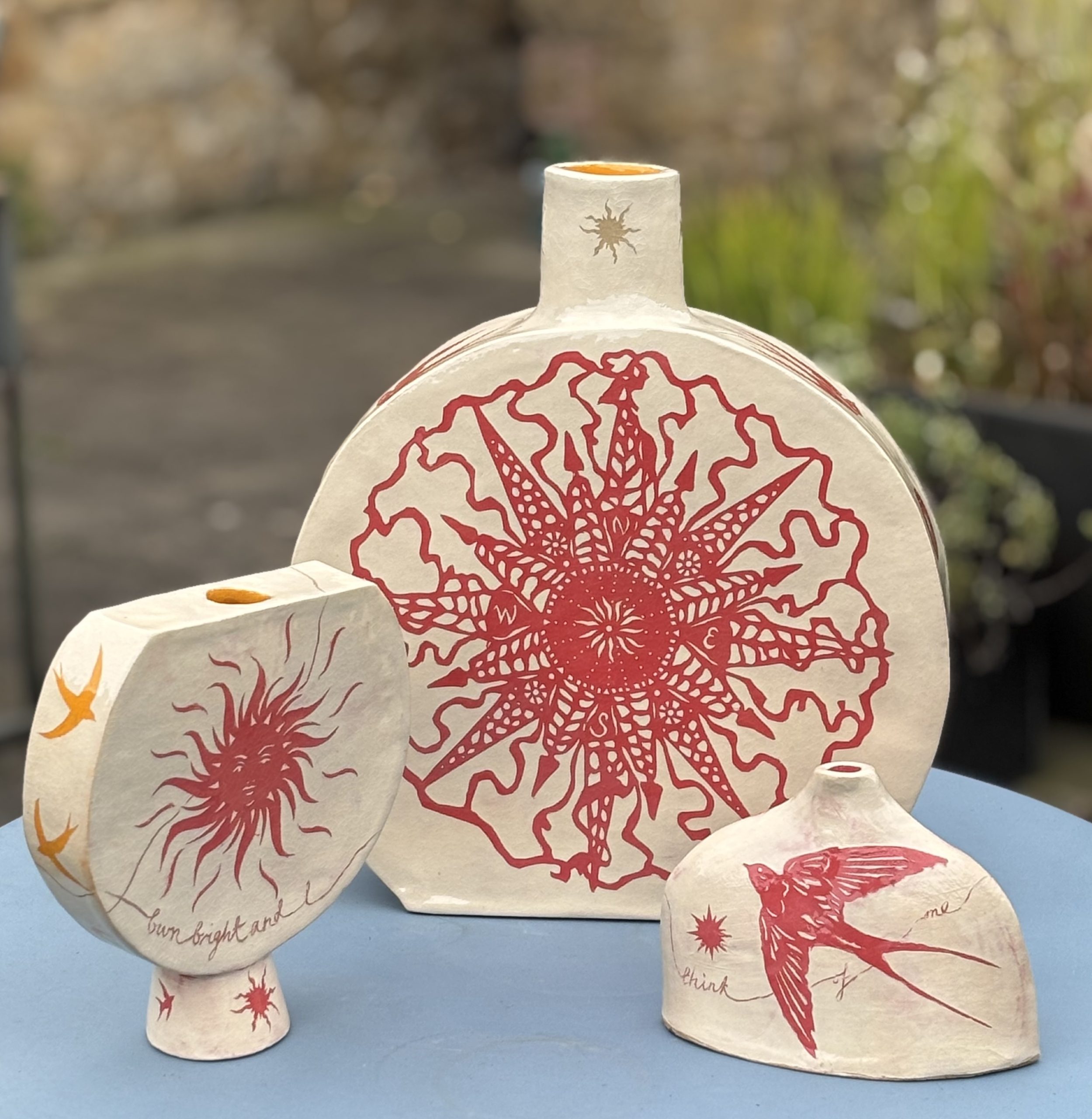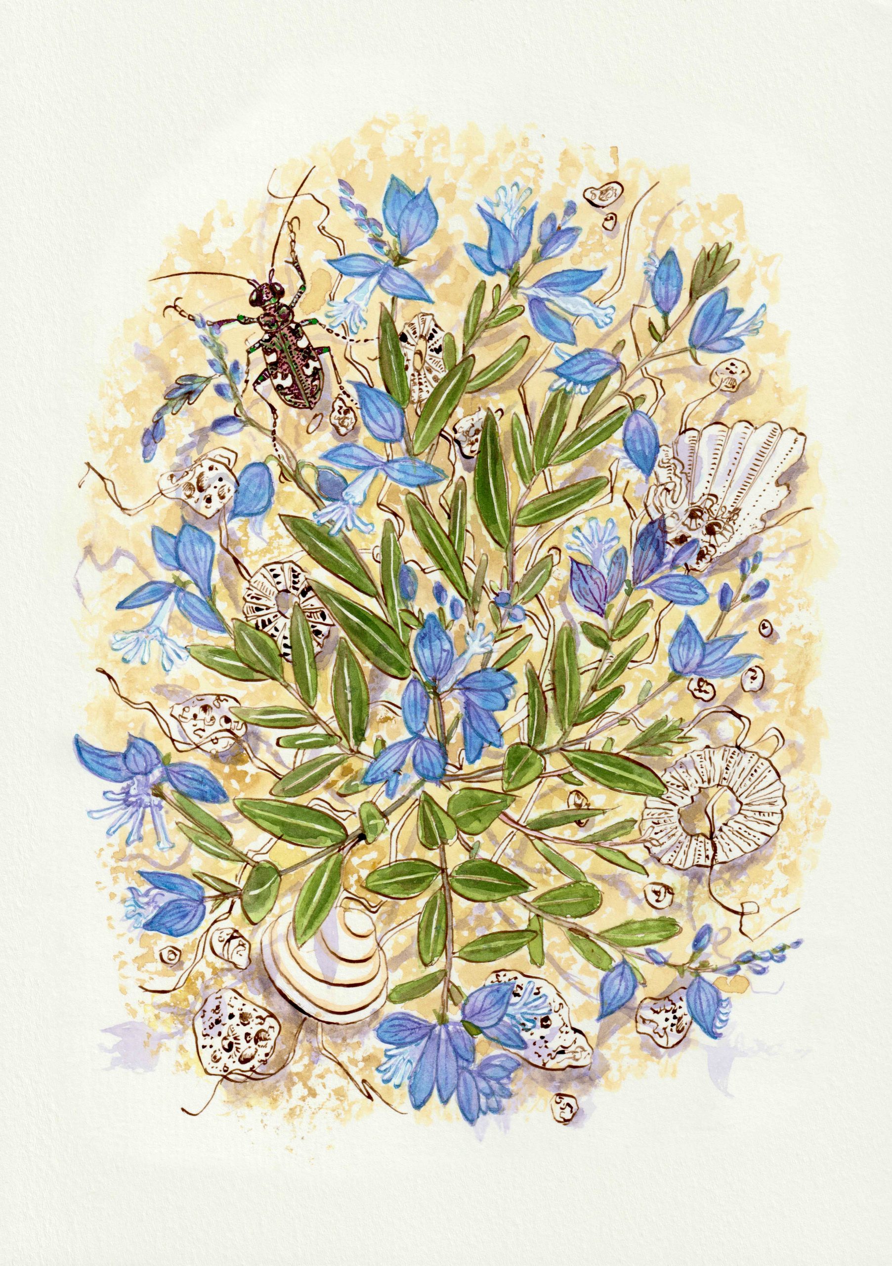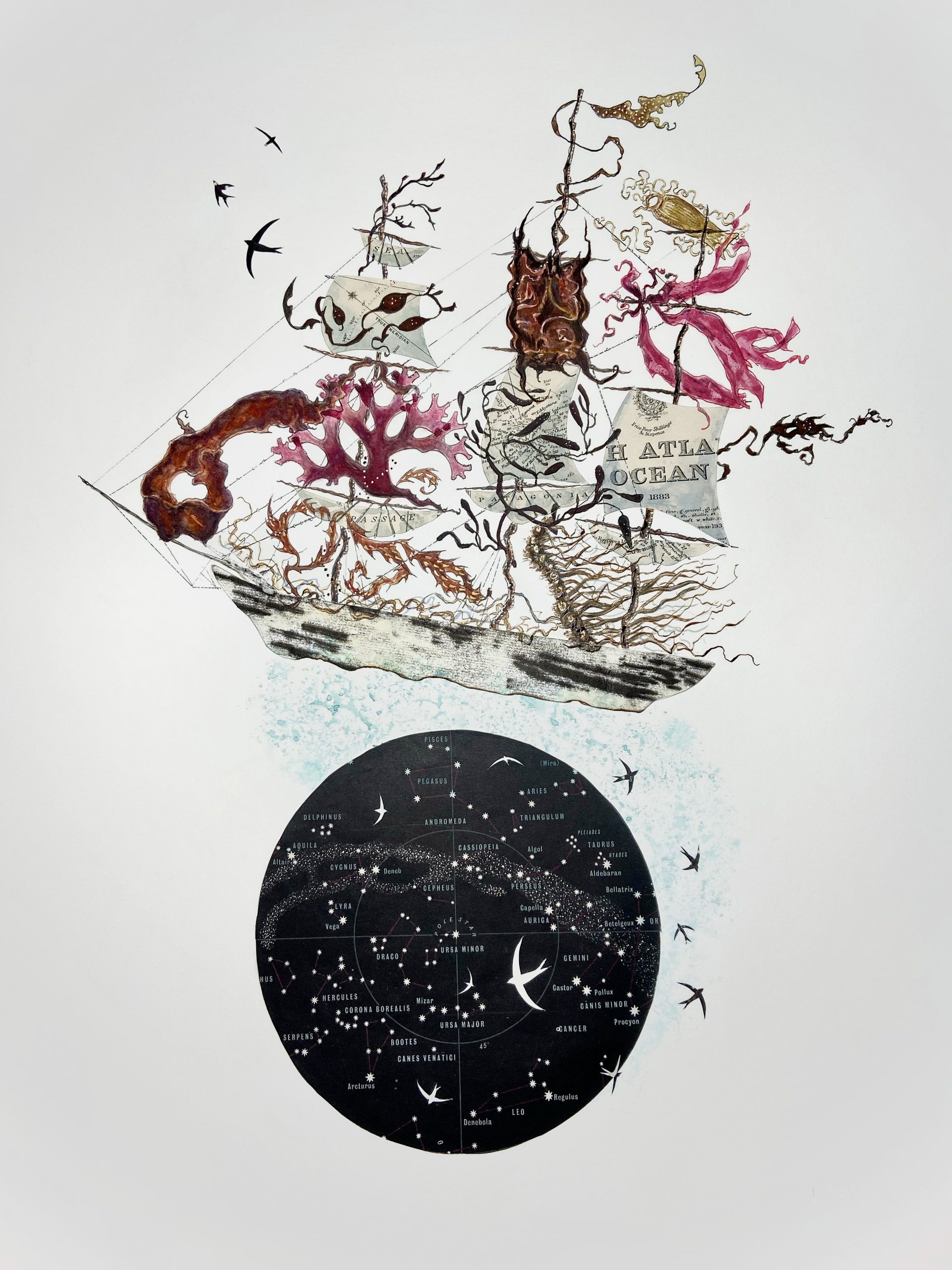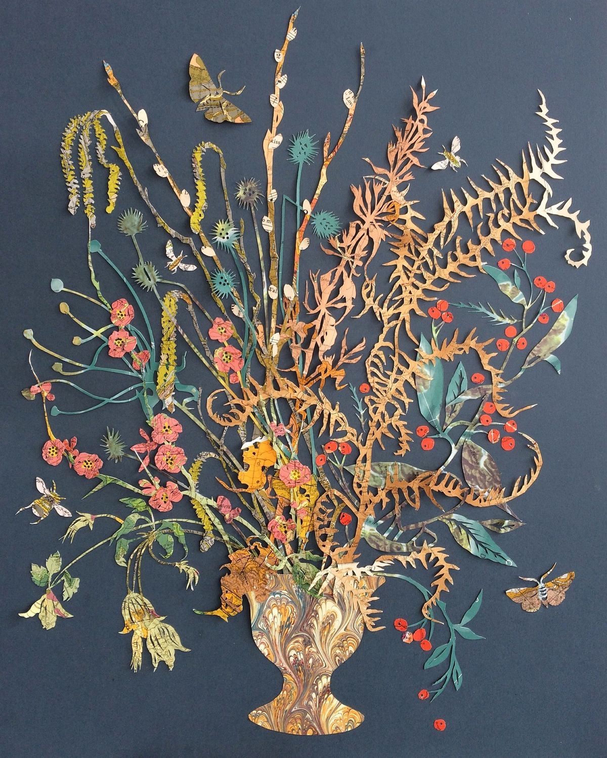 I am an artist based in Somerset, and trained at Camberwell School of Art. My work is primarily drawing based layered with paper cuts and collage. I make prints as well as undertake commissions and illustration work. I draw from nature and found objects I discover in the environment around me.